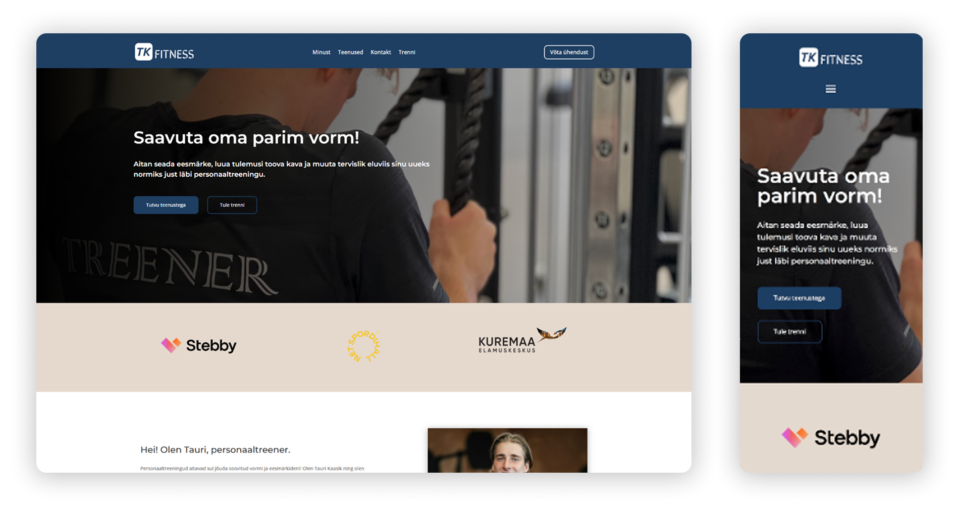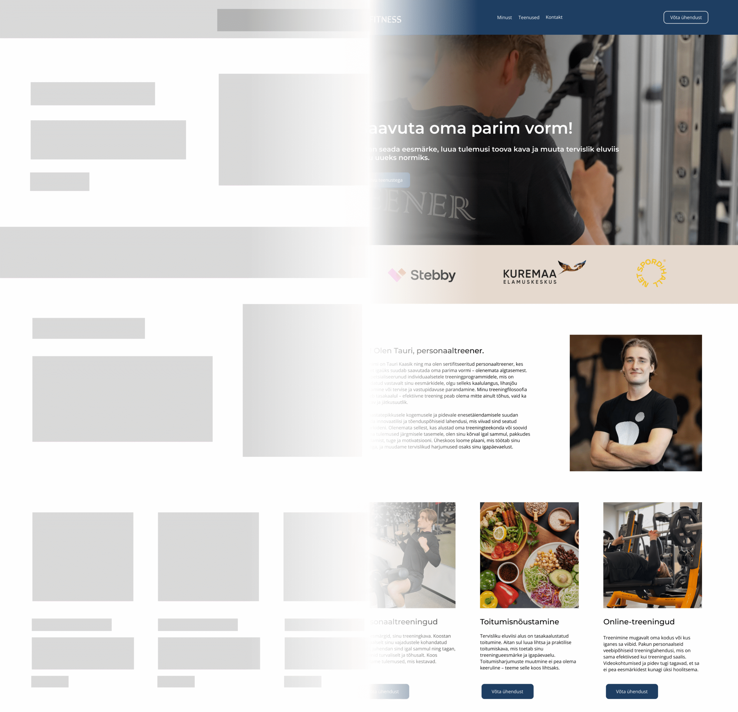 Pärast brändingu valmimist järgnes järgmine samm – uue kodulehe loomine. Eesmärgiks oli luua selge ja kaasaegne one pager tüüpi veebileht, mis annaks potentsiaalsele kliendile kiiresti ülevaate TKFitnessi teenustest ning looks usaldusväärse esmamulje.